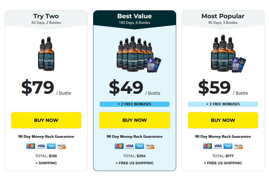 Audifort pricing varies depending on the package selected and any active promotions. Multi-bottle packages usually offer a lower cost per bottle compared to a single purchase. For the most accurate and up-to-date pricing, it’s best to check the official website directly.